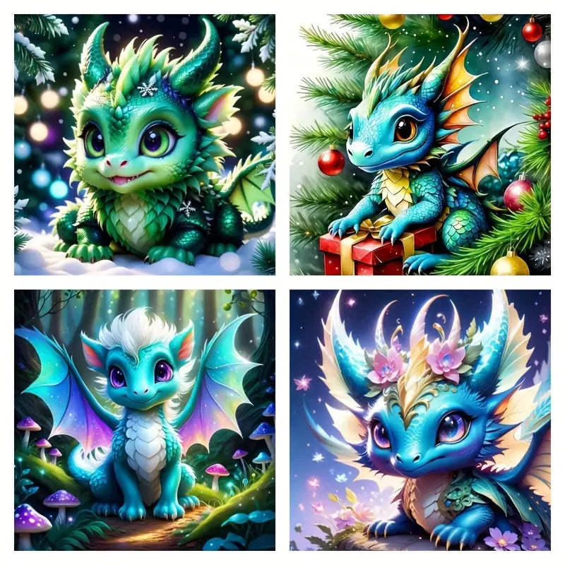 4- pack diamond paintings of dinosaurs