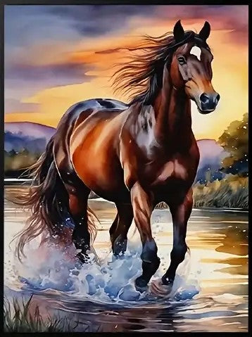 Dark brown horse running
