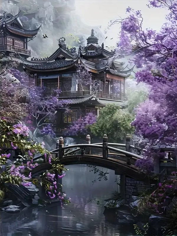 Purple trees with bridge